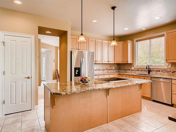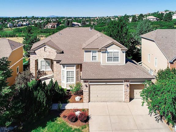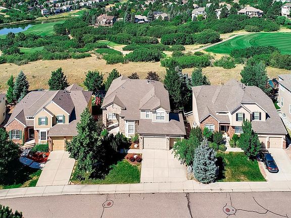 Outstanding home with beautiful backyard backing to open space and the golf course in prestigious Castle Pines! Enjoy sitting on your back deck and watching the beautiful Colorado sun set! A gently rolling hill behind the home provides privacy from the golf course. Beautiful kitchen with slab granite counters and stainless steel appliances. Spacious great room is open to the kitchen and nook. Formal living and dining rooms for entertaining. Oil rubbed bronze light fixtures. Plantation Shutters! Built-in speakers throughout the home! Master suite has his and her closets, access to the upper deck and a 5-piece bath featuring a frameless glass shower and soaking tub. 2nd floor loft has a fireplace and 2nd floor deck access. 9' ceilings on 2nd floor! Finished basement has a large great room with wet bar, space for a pool table and for your home theatre. The basement also has an additional bedroom, bath and storage. Main floor study can be a 5th bedroom. 1-year warranty.
