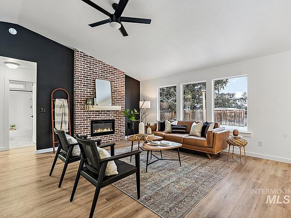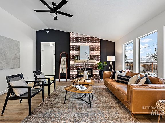 This is the one you’ve been looking for- and it's worth the wait! Better than new! This 4 Bed, 2 Bath is a standout with its accents and character throughout! This single level has been completely remodeled and features Quartz waterfall countertops, new cabinets, appliances, paint, flooring, tile and more! The brick fireplace adds warmth to the space and has an electric insert. All the windows add amazing natural light and the open floor plan and vaulted ceilings make the space large and roomy. Large backyard in a quiet neighborhood and minutes to downtown Meridian. Roof, HVAC, siding and water heater are 2 years old. Come see all this home has to offer!