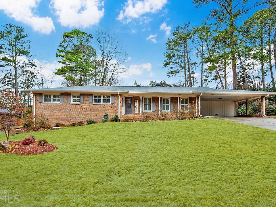 Southern Charm and Modern Convenience converge at this Updated Brick Ranch! Located in a sought-after Swim/Tennis Community, this home delivers a Flowing, Open Floorplan perfect for easy everyday entertaining. A Covered Front Porch welcomes you into a Large Living Room. Hardwood Floors extend into the Spacious, Heart-of-Home Kitchen with Granite Countertops, NEW Stainless Steel Cooktop, Double Ovens, Island, Breakfast Bar, and Dining Nook. Enjoy tranquil backyard views from the Bright Family Room with Stacked Stone Fireplace and Vaulted Wood Beam Ceiling. Unwind in the Owner's Suite with Custom Closet System and Private Ensuite Bathroom featuring Dual Vanity and Pebble Tile Shower. Two Additional Bedrooms share a Jack-and-Jill Bathroom. Off the kitchen, a Thoughtful Mudroom and Laundry Room offer the perfect place for life's odds and ends with Storage Galore! Downstairs, a Daylight Basement is prime for Easy Renovation, Bonus Storage Space, Home Gym, or Workshop. Soak up the sun with a Rear Deck featuring Built-In Bench Seating overlooking a Fully Fenced Backyard. A 2-Car Carport and Parking Pad welcome you home. NEW Carpet and Fresh Paint Throughout! New Ceiling Fans, Light Fixtures, and Washer/Dryer! Roof Shingles, HVAC Furnace, Heat Pump, and Basement Waterproofing ALL Recently Replaced (2019)! Minutes from East Cobb Shopping and Dining, Historic Marietta Square, Terrell Mill Park, The Battery, and Easy I-75 and I-285 Access.
