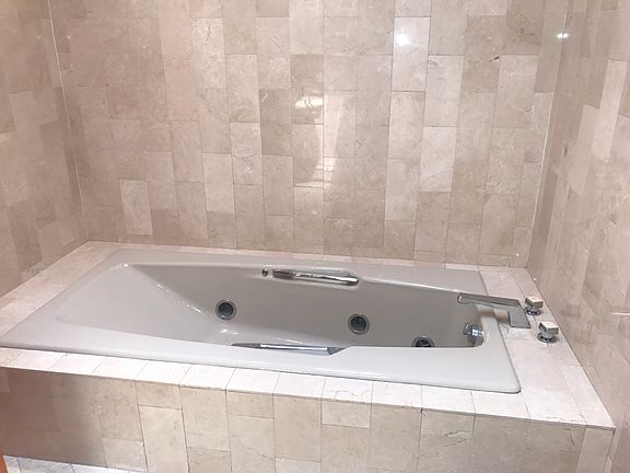 HUGE apartment. Perfect for entertaining or extended family. Spacious marble tiled living room. King size master bedroom suite with walk-in custom closet and master bathroom with soaking tub and skylight. 3 additional bedrooms. Updated kitchen with top of the line stainless steel appliance. Large balcony. Plenty of closet space. Transportation to NYC in the corner. Close to school and shopping.