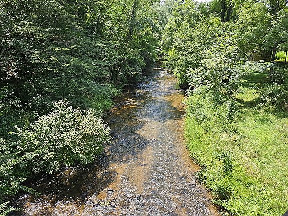 Loaded w/charm, character AND 380ft +/- of creek frontage! From the moment you arrive, the landscaping, welcoming deck & beautiful entry will captivate you... walking through the front door you'll immediately notice the gorgeous dark wood floors & staircase. Formal dining room to the right could double as additional living space or office/craft room. Large living room is perfect for entertaining w/rock fireplace & built in shelves. Continue to the kitchen w/doors leading to the back deck, lots of natural light, eat in breakfast nook area, coffee corner/prep kitchen w/2nd sink & large pantry. Full guest bath off the kitchen & stairs to 3rd bedroom above the garage. Main staircase leads upstairs to the master bedroom w/ large en-suite bath, dual vanities & walk-in shower. A stackable washer & dryer fits perfect in the master's walk-in closet making laundry a breeze!! 2nd bedroom is located across the hall w/a full bath. Basement is a blank canvas: game room, man cave or crafting corner. This space has outdoor access, washer/dryer hookups & plenty of storage. Fenced backyard, garden area, storage shed, 2 car garage, level yard & creek access makes this home a dream.