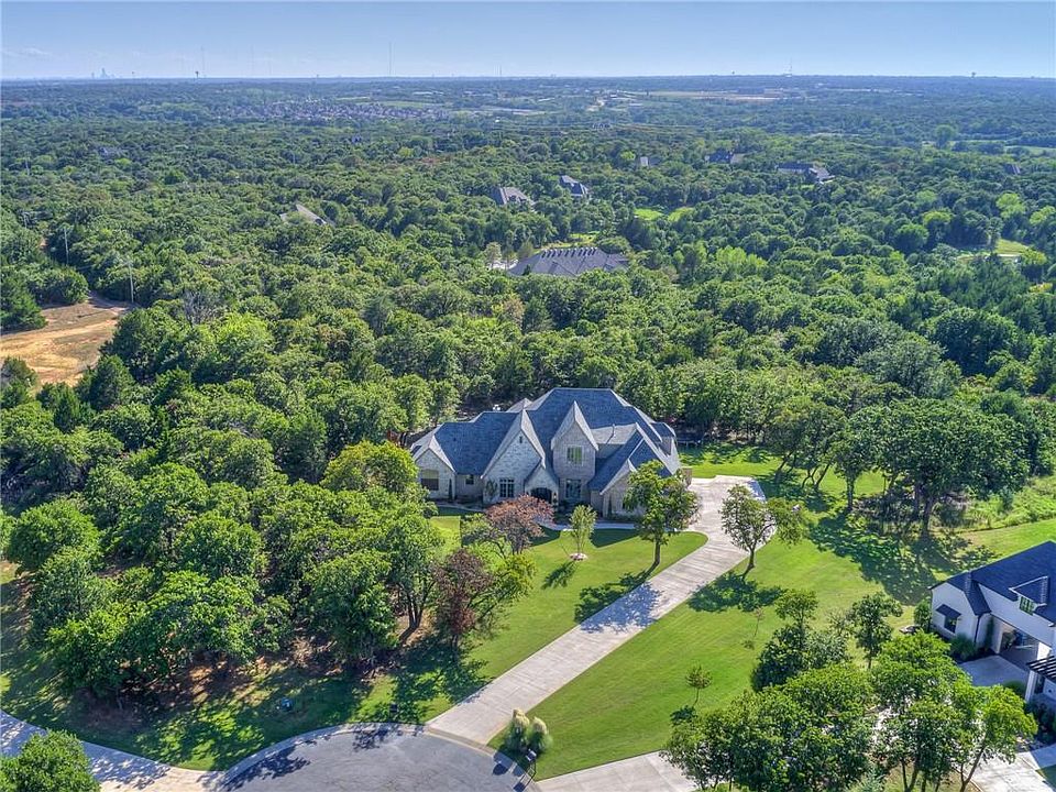 Upon entering the gorgeous, spacious home, you will be captivated by the elegant and timeless details. This home is perfectly suited for the most glamorous entertaining or an intimate family gathering. From the entrance foyer, you enter the jewel of the living room with wood flooring and with an abundance of windows looking out onto the treed estate. A customized kitchen provides all the designer trimmings such as stunning counters, a useful butler's pantry, built-in refrigerator, beverage refrigerator in the island, & double ovens. The private primary retreat offers views of the backyard, and a relaxing bath complete with separate vanities, freestanding tub, and walk-in shower. Located upstairs is a game room, a 4th bedroom with full bathroom, and study area with built-in desk. Home office with double glass doors, built in mud bench, epoxy garage floors, and EV outlet in garage. Outdoor fireplace & kitchen with grill. Located on a desired cul-de-sac in community. Edmond schools.