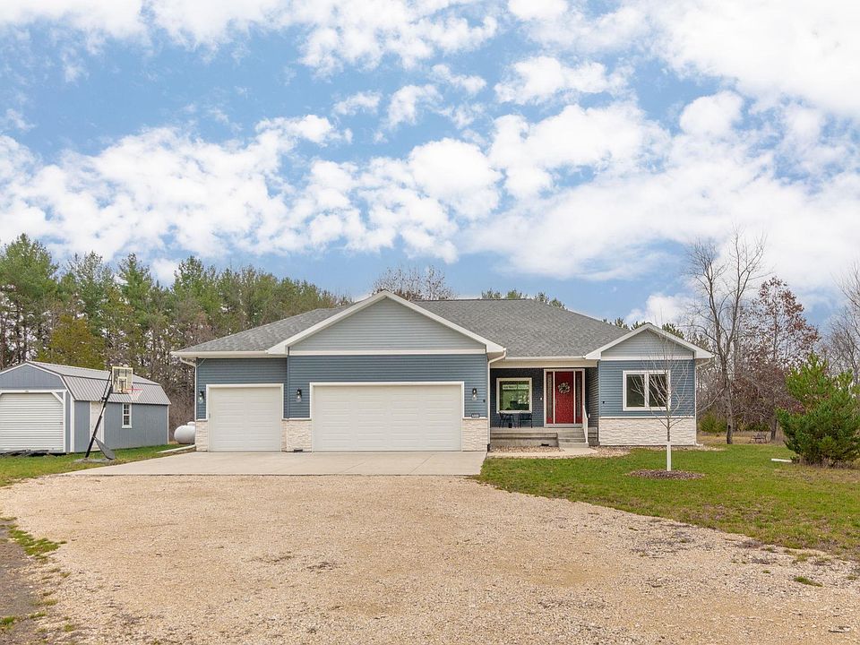 The One You've Been Waiting For! This exceptional property, set on over 4 acres within the Cedar Falls school district, offers a rare blend of privacy and convenience. Surrounded by nature, this home provides a peaceful retreat from the everyday hustle. Imagine starting and ending each day on the expansive front porch or back patio, savoring your coffee, or getting lost in a good book as you listen to the soothing sounds of nature. With an abundance of natural light streaming in, every room in this home feels bright, welcoming, and full of life. As you step through the front door, you're immediately greeted by stunning vaulted ceilings with beautiful beams that add architectural interest and elegance. The great room, centered around a cozy gas fireplace, serves as the heart of the home—a perfect place to unwind after a long day. The spacious dining area is ideal for hosting gatherings, providing ample room for family and friends to come together. The kitchen is truly a chef's dream, featuring a large gas range, double ovens, and an expansive island that doubles as a breakfast bar for casual meals. With a gorgeous backsplash, impressive counter space, abundant storage with custom cabinetry, and a walk-in pantry, this kitchen is designed for both function and style, making entertaining a breeze. The split bedroom layout ensures privacy and comfort for everyone. The primary suite is a tranquil retreat, offering a spacious bedroom with large windows that bring in natural light. The adjoining bathroom is a luxurious escape, featuring dual sinks, a beautiful tile shower with dual shower heads, and a massive walk-in closet with custom shelving to keep everything perfectly organized. On the opposite side of the home, you'll find two additional generously sized bedrooms, each with its own full bathroom—ideal for guests or family members. The main floor also includes a practical laundry room and a drop zone just off the garage, perfect for keeping daily clutter out of sight. The finished basement is an entertainer's dream. The oversized family room offers plenty of space for cozy movie nights, a pool table, or a ping pong table. A convenient wet bar makes this space perfect for hosting. Two additional bedrooms and a full bathroom provide extra accommodations, and the storage areas offer room to keep your essentials neatly tucked away. Outside, the property continues to impress. The attached three-stall garage and new 12 x 18 outbuilding offers ample space for vehicles and storage. Permanent LED lighting adds a festive touch, allowing you to decorate easily for all seasons and holidays. The wooded lot provides unmatched privacy, a perfect setting for enjoying the great outdoors and stargazing on clear nights. Additional features include a geothermal system for energy efficiency, a full-house automatic generator for peace of mind, and high-speed fiber optic internet from CFU, perfect for streaming, gaming, or working from home. Don’t miss your chance to make this stunning property your forever home—schedule a showing today! 24 hour clause.