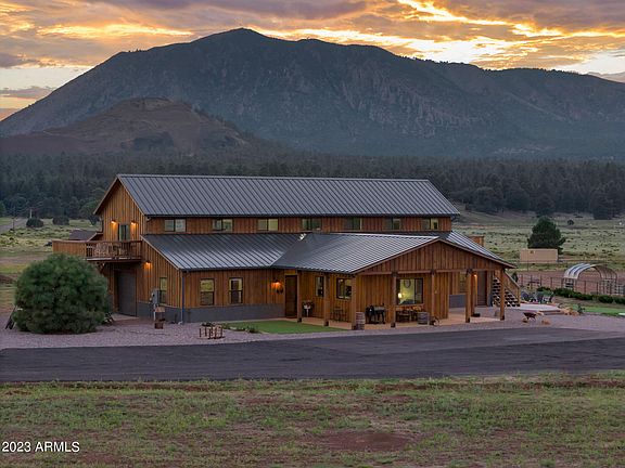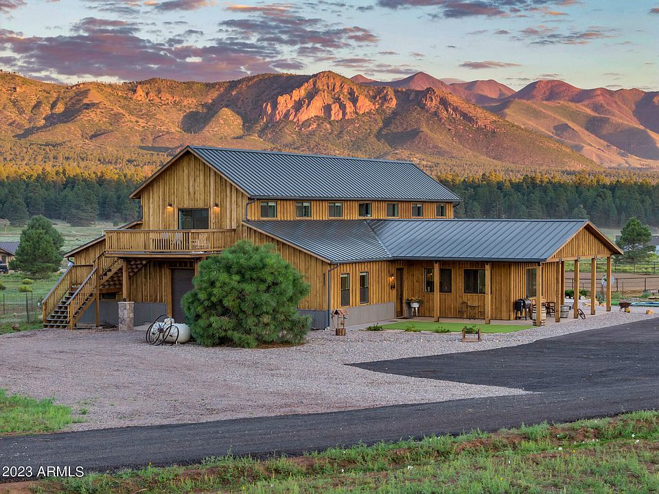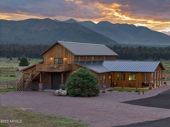 Welcome to this rarely seen, Rain Valley, property. This is a fully custom home finished in 2020, on 5 acres, offering the best Mountain Views of Elden and the Peaks you will find in Northern AZ! Boasting 6 bedrooms 5.5 bathrooms, 4 car garage. Fully equipped guest quarters with separate entrance that can be used as a guest suite or mother in law living space. Stained concrete flooring offers low maintenance living while adding a touch of designer feel. Fully custom kitchen, high end granite, double oven with a separate single range/oven. Beautiful custom cabinets, walk-in pantry. Large eat in kitchen with room for a dinning table or breakfast nook. Step in to the oversized great room with vaulted ceilings, amazing views out the front porch and plenty of entertaining space. The split floor plan offers you the privacy you have been looking for. The spacious, primary master suite features his and hers closets, and an in suite bathroom. Primary bathroom showcases touches of modern to offset the rustic feel with a custom walk in shower, soaking tub, enclosed toilet, and dual sinks. Coming outside, the high quality fencing can be kept as a corral or moved to border the perimeter of the property. Nicely done landscaping with two upper open decks make the view of the mountain truly enjoyable as you spend some time soaking it all in. The massive front asphalt driveway has space for any and all amount of toys and vehicles you can think of. The wildlife here can be truly spectacular as Elk other varieties of animals that call Flagstaff home frequent the property. Come take a look at this truly one of a kind property and you will quickly see how special it is.