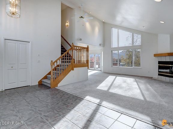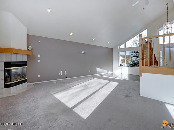 Homes in this neighborhood rarely come up for sale so don't miss out! Extremely well-maintained home w/amazing Chugach Mountain views! Main floor feat lrg tiled entry, vaulted ceiling, wired audio & gas fp in liv rm, which flows into DA & kitchen w/Corian counters & SS appliances. Master suite offers private balcony w/views, WIC, & updated MBA equipped w/new flooring & vanity w/granite counters.DLB feat wine room which can be converted to an office/craft room or addtnl fam rm. Patio access from the family room to the backyard. Lots of garden beds and great curb appeal with the thoughtful landscaping design. Home is wired for sound in the living and family room. Close proximity to JBER and major shopping centers.