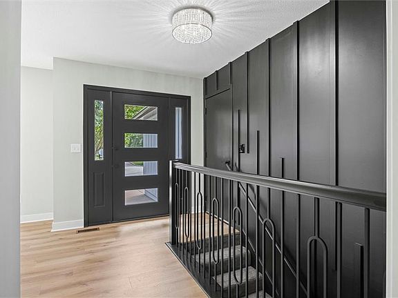 Stunningly renovated ranch in private neighborhood with no through streets! Contemporary glam design with exceptional attention to detail. So much new including Pella windows, stucco, int/ext paint, garage doors and openers, front door, kitchen, bathrooms, flooring, fixtures, hardware, interior doors, trim, railings, etc! Gorgeous kitchen with an abundance of ceiling height cabinetry, pantry with pull-outs, quartz counters and stainless steel appliances. Primary suite features a tray ceiling, walk-in closet and double vanity. Contemporary feature wall and railings. Huge basement rec space plus plenty of room left to finish out 4th and 5th bedrooms. Half bath in the basement could easily become a full. For sale by Owner/Agent.