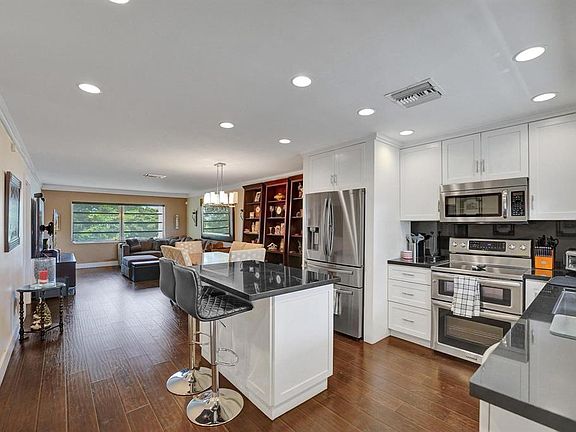 Discover this charming 2 bedroom 2-bathroom located in the vibrant 55+ community of Royal Park Gardens. This beautifully remodeled unit features a bright and modern kitchen with white cabinetry, granite countertops, and a convenient kitchen island offering extra storage and eat in counter. This unit boasts an open floor plan filled with natural light. The bedrooms are spacious with ample closet space. The master has a walk-in built-out closet and updated bathroom. The whole unit is furnished with a stylish wood plank laminate flooring throughout.