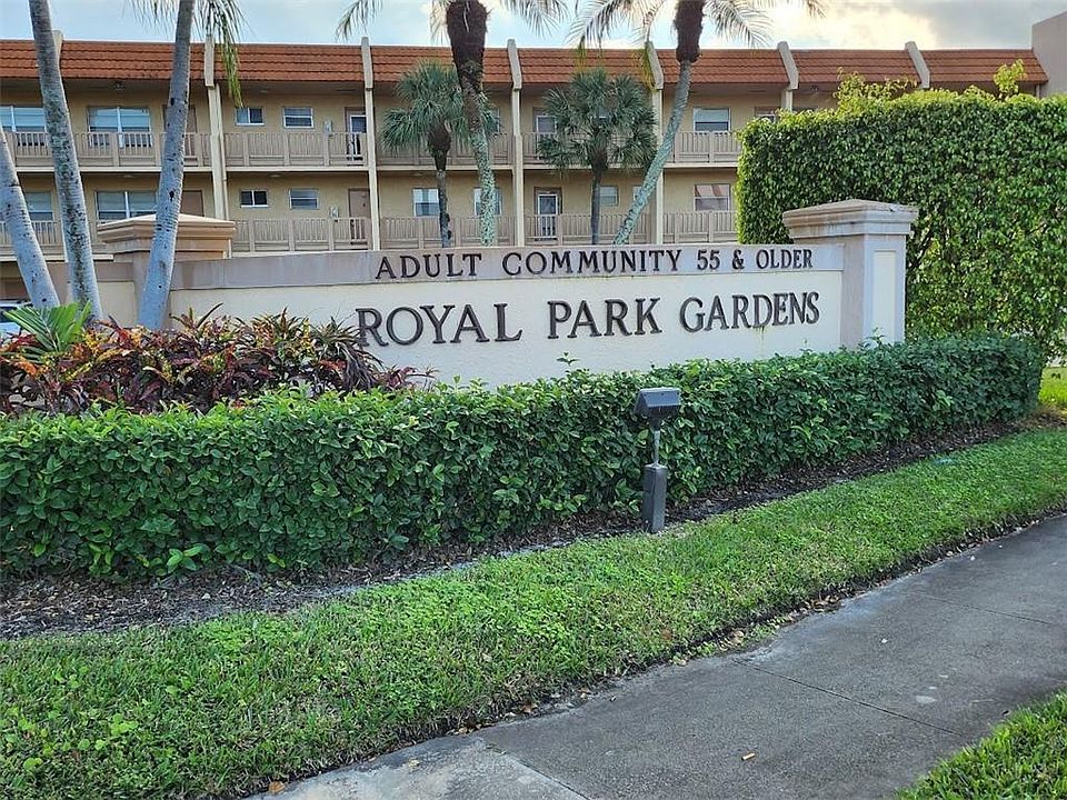 IMMACULATE UPDATED 2 BEDROOM / 2 BATHROOM IN 55+ ROYAL PARK GARDENS. THIS HOME FEATURES HURRICANE SHUTTERS, UPDATED KITCHEN AND BATHROOMS, LARGE TILE THROUGHOUT, ENCLOSED PATIO OVERLOOKING POOL, LARGE WALKIN CLOSET IN MASTER BEDROOM WITH CALIFORNIA SHELVING. A/C AND WATER HEATER ARE NEWER. PRIVATE EXTRA STORAGE. THIS HOME SHOWS TRUE PRIDE OF OWNERSHIP. ROYAL PARK GARDENS FEATURES 3 POOLS, TENNIS, CLUBHOUSE, EXERCISE ROOM AND PAVILION FOR YOR ENJOYMENT. GREAT LOCATION. CLOSE TO ALL MAJOR HIGHWAYS AND SHOPPING. HOA REQUIRE ONE YEAR MAINTENANCE TO BE HELD AT CLOSING FOR 18 MONTHS. 25 % DOWN PAYMENT IS REQUIRED. NO PETS. 650 CREDIT AND $30,000 PER YEAR INCOME. THANKS FOR SHOWING