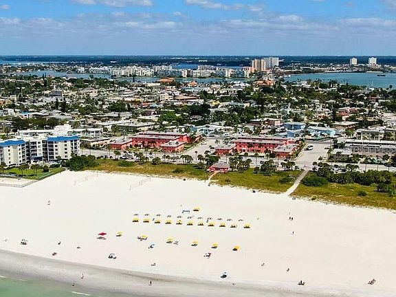 INCOME PRODUCING beach condo with beautiful courtyard views from BALCONY. 3 DAY MIN RENTAL. Few steps to the finest white powdery sand Beach! Sold fully furnished and turnkey. New A/C. MONTHLY FEES INCLUDE ELECTRIC! No owner restrictions. Could be used as a primary residence, vacation home or income property. Owner can use on-site rental company or rent out on their own. Every day feels like a vacation. Enjoy breathtaking sunsets on the Beach or relax by the heated pool. Condo offers Heated Pool, Grilling Area, Shuffleboard and much more! Amazing location, right by Paradise Grille, short walking distance to multiple Beach Restaurants and bars, live music and Corey Ave Sunday Markets. Short drive to downtown St. Petersburg, museums, malls & movie theaters.
