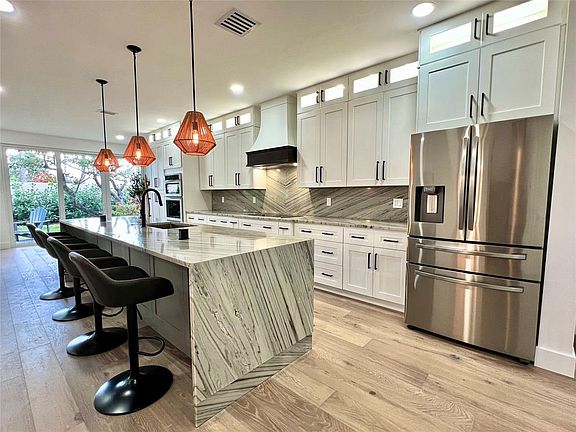 Luxuriously renovated 3 bed 2 1/2 baths townhome in the sought after community of Boca Pointe. This impeccable, completely renovated home offers approximately 2000 sq/ft with an spectacular open concept 25 ft kitchen, waterfall quartzite counters, wine cooler, cooktop, wall oven and hardwood floors throughout. The wall to wall sliding doors bring ample natural light through the entire first floor allowing to see from the front door straight into the backyard. Spacious master bedroom and bath with walk in closet. Limestone on bathrooms and Impact windows. Places of worship within walking distance. Gated community with 24 hour security. HOA maintenance includes Cable TV, common areas, landscaping, insurance and ROOF. The property can be rented up to 4 times per year. Easy showing.