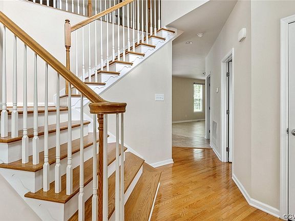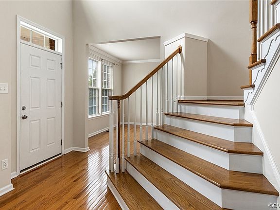 - Description: HDWD, Two-Story Foyer with Angled Staircase