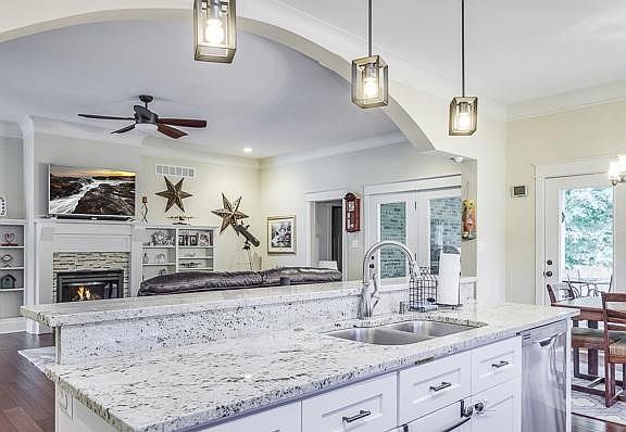 This is a beautiful 4 bedroom, 3 1/2 bath brick ranch. It is situated on a corner lot in Ash Landing located in the award winning Oldham County School District. This open floor plan includes a great room, dining room, and eat-in kitchen with gorgeous crown molding, built-ins and hardwood floors. The kitchen includes granite counter tops, custom cabinets, a large pantry, work station with raised counter/bar area and special track lighting that opens up to a large covered concrete deck. The first-floor laundry room/mud room has built-in cubbies and an ice maker that opens to an attached 2 car garage. There is a large first floor master which opens up to the master bath with a huge refinished glass enclosed shower and walk-in master closet. The basement has a 4th bedroom with a full bathroom. The basement has a finished media room with built-in surround sound for all of your movie and sport watching needs that is separate from a huge room built for entertainment or a really nice toy room for your kids. The backyard has a private deck that allows you to enjoy your cup of coffee or family BBQ and a great play area for the kids to run around. A new added water softener was installed on 3/25/19