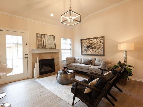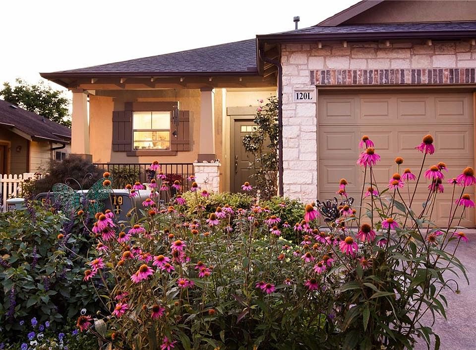 One story, no steps! One car garage. Kitchen has tall 42" cabinets and is open to the living room. The prior occupant was a Master Gardener so the front flower garden is stunning! Side french door provides access to condo's own fenced grass yard, which is mowed by HOA. This unit has a gas fireplace, high ceilings, crown molding, luxury vinyl plank, and updated lighting. Cottage Court is gated and has a community pool too with low monthly HOA dues of $200/month. Whole Foods, Costco, Torchy's, just 1 mile!