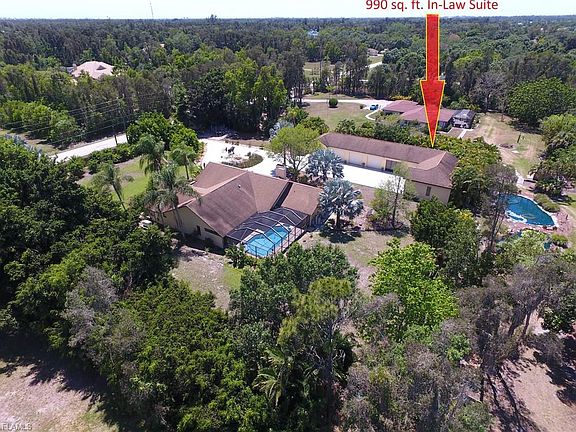 Briarcliff is a family friendly community - conveniently located in S. Ft. Myers, with driving time's of 15 minutes or less to places like Southwest Florida International Airport, Ft. Myers Beach, Coconut Point Mall, F.G.C.U., Gulf Coast Town Center, Interstate 75 and is only 2 miles to US-41. This 1.27 acre site includes two freestanding structures, offering several recent improvements and upgrades. Structure 1: Primary residence includes 3 bedrooms, two bathrooms, dining room, great room, new kitchen, pantry, den, wood burning fireplace, large laundry room with storage and counter space, two car garage. Pool and exterior paint in 2020. Power outage, no worries the 22KW Generac Guardian with automatic switch over has a new battery and is serviced annually. The 1,000 gallon propane tank sits near the southeast corner of the property. Structure 2: This is a combination of a fully built out In-Law Suite (990 sf) includes private bedroom, full bath, kitchen and spacious living room plus a 2 car garage on one side and a 4 car garage on the other - all is under air. Each has electric garage door openers and keypads. Property is partially fenced with electric single swing entryway gate,