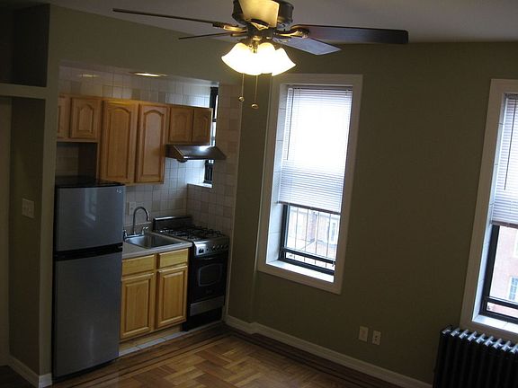 This studio apartment consists of 1 room -with a kitchen area built into it. It is located on the 4th floor of a 4-story walk-up. The stairs are not the curvy type but rather the straight-away type, which are very manageable. The apartment is in very good condition. Total move-in money: First mo. ($1450) + Security deposit ($1450) + $20 credit/background check fee= $2920 Some features: -The main room is about 15 x 13. -bathroom and kitchen area are modern -The bathroom is normal sized, tiled from floor to ceiling -There are 2 closets and overhead storage areas, pictured in the photos -The main room has a ceiling fan and wall lights Tenants pay for gas & electric, I pay for heat & hot water. The size of the apartment makes it best suited for 1 person. The location of the building is very convenient to all. Miscellaneous: -The express 27 to downtown (20-25 min to Downtown) and the 37 to midtown (30-40 minutes to Midtown) min are right down the block, as are laundries & delis. -The train station is 3 blocks away and all stores and shops on 3rd begin within 2 blocks. -It is also right by Owls Head Park-one of the nicer parks in the area, the pier and the bike-path & the ferry service @ the 69th st pier. -The location is also ideal for any NYU Medical center professional who may be looking for an apartment- as the hospital is minutes away. The building is very quiet & a "No pets" building, so if you have OR are thinking of acquiring pets, please don't contact me. Call or TEXT anytime and leave a message : sixfoursix-twofivefive-sixsixzerofour
