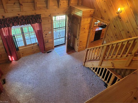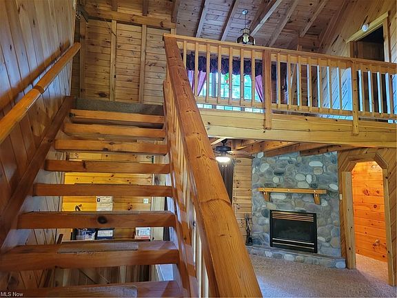 Beautiful Log Home With Front Porch Nestled On 2.5 Acres! Spacious Eat-In Kitchen With Plenty Of Cabinet and Counterspace. Large Great Room Features Stone Fireplace. Desired First Floor Master and Full Bath On First Floor! Convenient First Floor Mud and Utility Room! Half Bath On First Floor. Fabulous Wood Staircase Leads To Second Floor With Loft and Second Full Bath. Huge 20x36 Steel Outbuilding Along With Shed. Steel Roof In 2009. Home Is Constructed Of Southern White Pine Logging. One Year Home Warranty Included.
