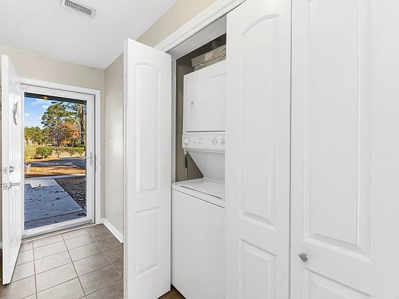 Charming first floor 2BR-1BA condo in a gated community! Features: stacked washer/dryer, tile flooring, entrance, kitchen & bath, closet system in master bedroom, a spacious patio with a relaxing view & located directly across the street from the community swimming pool. Myrtle Beach Golf & Yacht Club is a gated community with 24-hour security, community pool, tennis courts, picnic area and club house just 6 miles to the beach. Conveniently located off Hwy 707, access to the airport, Market Common and Murrells Inlet Marshwalk. Plus, conveniently located in the award-winning St James school area and amazing restaurants, entertainment, medical services and the beach!
