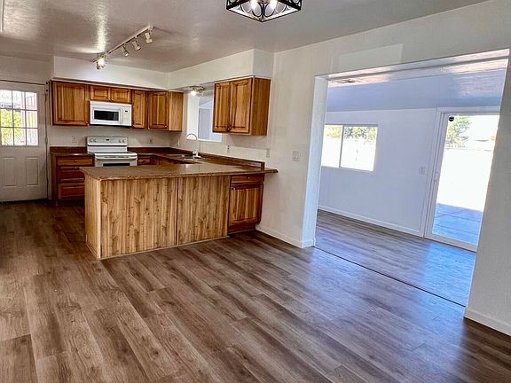 Discover endless possibilities in this spacious brick home with no HOA and alley access. The open floor plan features new interior paint and new flooring throughout the entire house. The kitchen has beautiful wood cabinets and overlooks the dining area and Arizona room offering a versatile space for entertaining or just relaxing. All of the bedrooms are large, and the master suite features a huge walk-in-closet and master bath with a pedestal sink and a separate vanity with a sink. The back yard has a large custom cement slab the entire length of the house to possibly extend the porch, put a spa or make it a basketball court, the choice is yours. The playground and shed convey.