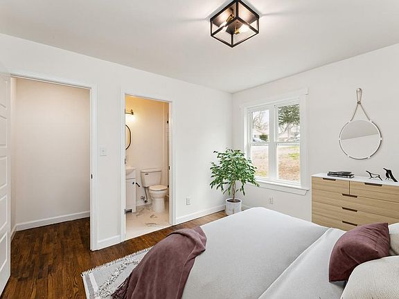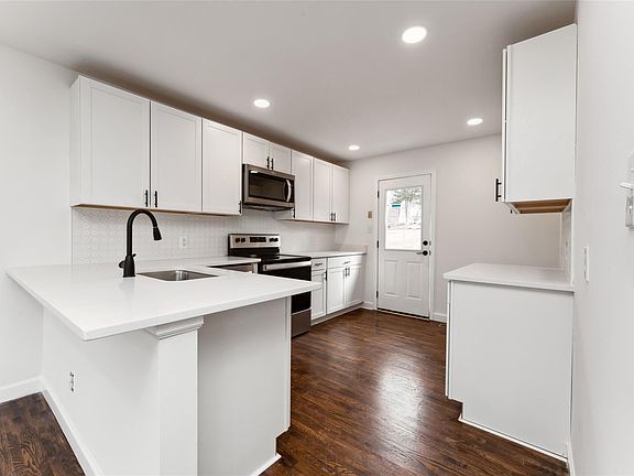 Fabulous and complete newly remodeled home! Features all new cabinets in kitchen and bathrooms, quartz countertops, tile backsplash, stainless steel appliances, new hvac system. Beautiful refinished real hardwood floors throughout, new multi panel designer doors throughout, all new fixtures. Designer ceramic tile in bathrooms, ceramic tiled showers, glass enclosure in primary bathroom shower. Home sits on large corner lot with fenced back yard. Several photos are virtually staged.
