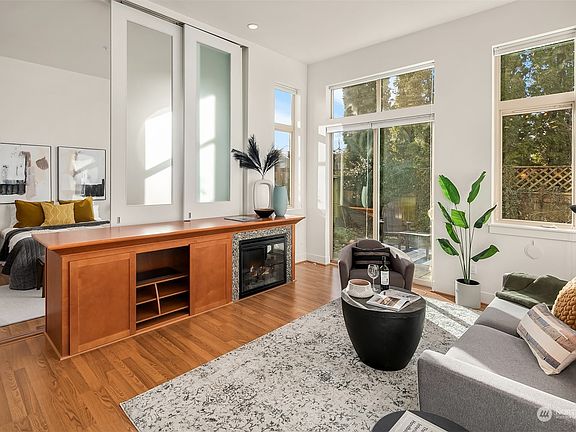 Large 1-bedroom unit at Fini with soaring high ceilings, cozy electric fireplace with built-ins and hard surface flooring throughout (no carpet!). Accommodating kitchen boasts ample storage space, quality stone counters and stainless steel appliances. Uncommon to find in a condo is the private fenced rear patio, which is perfect for pet lovers and green thumbs. Unit comes with one secure garage parking spot and private storage unit. Building amenities include a fitness center & car wash area. Located in the heart of Phinney Ridge, just steps from everywhere you want to be, including Bar Method, yoga, highly rated restaurants, bakeries, an award-winning brewery & wine shop.