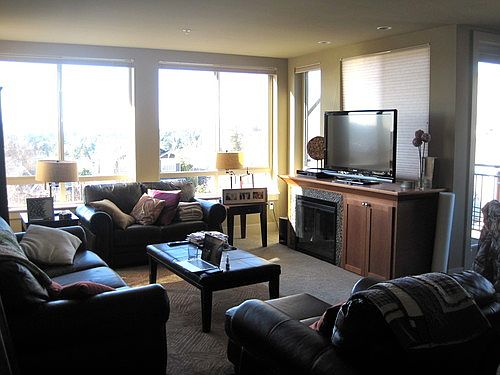 Available Now! - Fantastic corner unit with a panoramic view of the Olympics located in the heart of desirable Phinney Ridge. Smart layout makes the most of the space with open kitchen/living/dining area, two bedrooms plus a den and two baths. Kitchen boasts granite counters, large island, pendant lighting and loads of storage space. Living room has wonderful views, gas fireplace and door to private deck. Master suite features views as well, large closet, tiled bath, and cozy carpeted floors. Rent includes one parking space (second space $50/month) and storage unit. Secure building has stylish lobby and fitness center. Pets OK with additional deposit. Absolutely no smoking. Wonderful Phinney Ridge neighborhood has great retail and restaurants and easy proximity to Fremont, Green Lake and Ballard, Woodland Park Zoo, Hwy 99 and bus lines. Water, sewer and garbage and Air conditioning included. $250 move in fee.