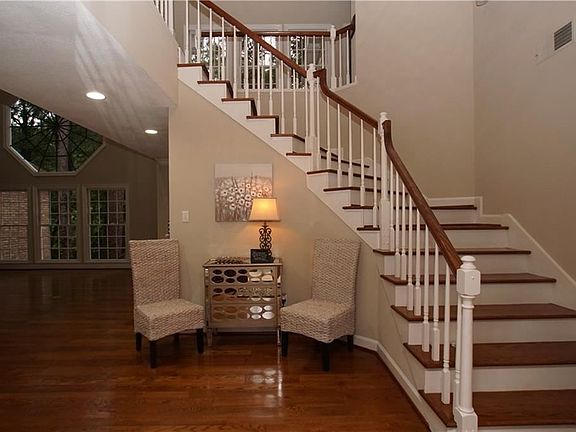 This home has it all!! Approximately 1 acre, stunning mature trees with amazing views and a 3800 square foot home with all the bells and whistles. From the initial approach you will see the custom stained glass windows that compliment this beautiful home, and the main entry is embellished with Bass Antique gas lanterns. Upon entering this home you will see the open layout, winding wood staircase, grand living room with soaring smooth ceilings, exquisite trim work, beautiful wood burning fireplace with stunning bookcases and library ladders, and just off this amazing room is a small bar with copper sink and wine refrigerator. The small bar is perfect for Formal or Informal entertaining. The kitchen features granite counter-tops, new stainless steel appliances, tons of storage and cabinetry, farmhouse sink, and custom breakfast bar. Bathrooms have granite and many other lavish features. The master suite is oversized and still has an adjoining office/children's nursery. This home features walk in closets; 3 bedrooms upstairs; huge laundry room with custom built-in's, a utility sink and built in ironing board; crown work in every room. Home has wood and wood style flooring throughout, new carpet in all bedrooms, new lighting throughout, new roof, porches on the front and back of home, and attached garage with side entry . The home has been completely remodeled by a licensed home builder and professionally staged. The seller is a relative of the listing agent.