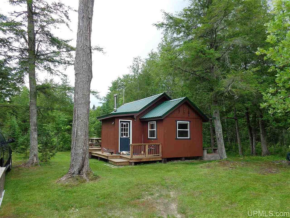 Are you looking for a hunting camp for the 2021 hunting season? If so then the search is OVER!! This hunting cabin is outfitted with some of the comforts of home yet not overdone to provide the great outdoors experience. The cabin has an eat in kitchen area, 2 bedrooms and a large living room with wood stove. The cabin is not too large so the woodstove is more than enough to heat this space. The outbuilding behind the cabin has storage and also houses a propane hot water heater that feeds a gravity shower, so cleaning up with a hot shower after being in the woods all day or relaxing in your barrel sauna is possible. The cabin has been meticulously maintained by the owner and you will appreciate the low maintenance metal roof. The grounds are like something you would see in a city park with lots of mown areas and trails to walk the 119 acres of property. There are four deer blinds on the property currently and the owner also has motion cameras set up to capture the images of what is visiting the property. This is the perfect time to buy your hunting cabin getaway and get ready for this years hunting season. So make an appointment and go see this one!!