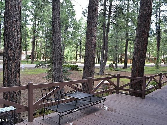 Adorable cabin in Pinetop Lakes. Recently remodel includes bathrooms and kitchen. Nestled in the pine trees. Enter through the Arizona room with Antique wood burning stove. Spacious living/dining room with brick feature fireplace. Kitchen has recently been remodeled with new dishwasher, stove etc. Both bathrooms have been remodeled, one bath down and one upstairs. Spacious bedrooms, master on the ground floor. Bedrooms upstairs have plenty of storage, ceiling fans, sliding doors and small decks. The large laundry room exits to the rear. This cabin is move in ready and would make a great affordable summer retreat or year round home. Pinetop Lakes recreation center has a pool, club house, hot tubs, library and game room. Don't miss this cozy White Mountain Retreat.