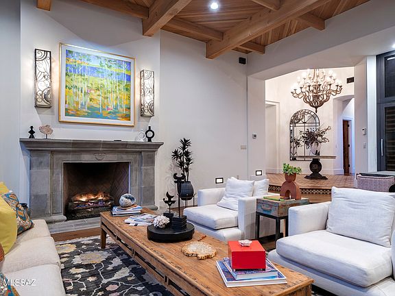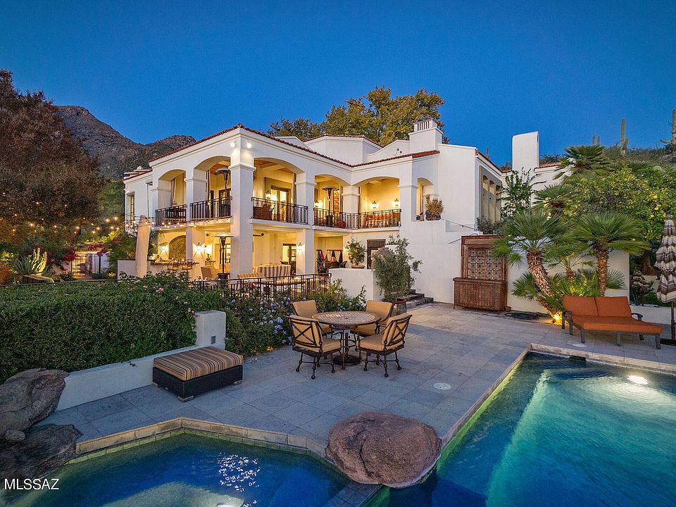 Situated on a commanding view lot overlooking the greens of the 1st fairway, this adaptive estate home demands privacy while preserving views that open out to the far reaching vistas of the adjacent Catalina Mountains, with the expansive city lights beyond. As one travels between the individual spaces, dramatic landscapes unfold, allowing for an abundance of natural light from every room. Transparent facades and French doors fuse indoor and outdoor living environments, used to derive a sense of spatial richness. This estate integrates cutting-edge technology through the use of an interface automation for sound and security. The fit out and quality of finish is incomparable, proportioned with elegant architectural features and large steel casement windows that provide expansive views overlooking the established grounds. The home's interiors feature the highest quality materials, adorned with reclaimed solid oak wood floors, juxtaposed against an inlay of Spanish deco tile, with a cohesive blend of custom cabinetry styles and finishes featured throughout the residence. Whitney recessed oak is brilliantly contrasted against black espresso millwork, with open pore wood treatments, fitted in a combination of quartz and granite surfaces. From the warmth of timber to the cool touch of stone, materials were carefully selected and meticulously detailed to evoke a sensory experience that resonates with the human spirit.