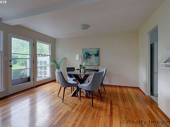 This mid-century condo is light filled with a freshly painted interior and lovely hardwoods throughout. A portable dishwasher sits under the counter top. The open living/dining area with a wall of windows looks onto a spacious patio and is facing a secured courtyard with walking paths. Bus line is 2 blocks away. Unit is close to Rose City Golf Course. Off street parking is available. [Home Energy Score = 5. HES Report at https://rpt.greenbuildingregistry.com/hes/OR10181681]