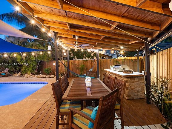 Discover your dream home nestled on a sprawling corner lot in a family-friendly neighborhood. Inside this elegant 4-bedroom, 3-bath gem features a spacious open layout, stainless steel appliances, additional family room, mother-in-law suite with its own entrance, a separate laundry room and hurricane impact windows and doors throughout. Step outside to a landscaped backyard paradise fully fenced in with a saltwater pool, covered dining area with a built-in BBQ bar, flagstone firepit area, and ample of exterior lighting - perfect for entertaining. Utilize the backyard trailer for a workshop or extra storage. With a garden box, solar water heater and an electric car charging source, this home blends luxury with sustainability. Truly a well maintained impeccably appointed home is a must see!