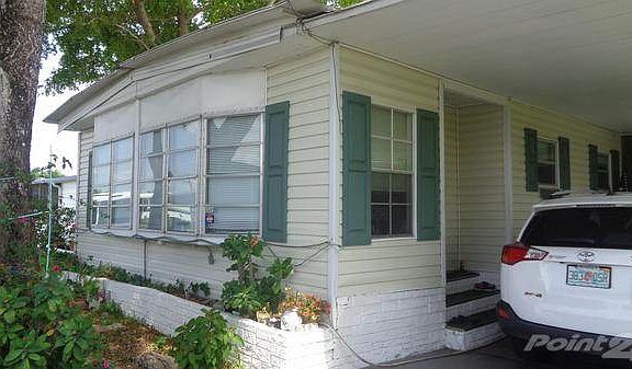 24 X 48 DW plus 12x24 glass sunroom, 2 car carport, outside enclosed storage area, freshly painted inside and out, including kitchen and baths. Gated 55+ community with all the Amenities.