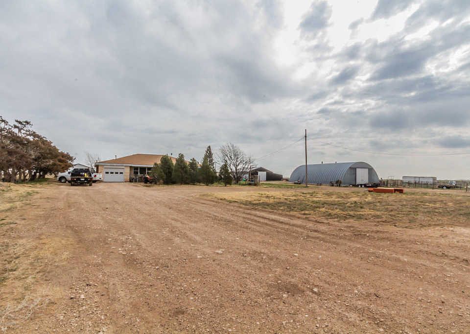 Well built, Well Maintain, in great condition ranch home south of Bushland. 3 bedrooms, 2 Bathrooms, 2 living room, 2 car garage, all bedrooms have hard wood floors, all metal roof including eves of home, 2308 square foot, 10 acres, with several outside buildings and large Quonset barn, cattle holding, working, and loading facility behind the home. More acreage can be made available adjacent to the house at an additional charge. Don't pass this up if you want a great home in the country at a fair price. This would make a great horse facility or an economical place to get to move to the country. House also has a very good water wale. home has very good water supply. Digital cable in front, by county road