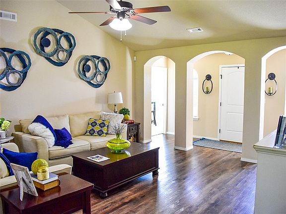 The gorgeous rc washington plan is loaded with curb appeal with its charming covered front porch, brick columns, and arch-top windows. This home features a split floor plan with 4 bedrooms, 2 bathrooms, an inviting entryway, a spacious master suite, and a stunning kitchen/dining area fully equipped with energy-efficient appliances, ample counter space, and a convenient pantry.