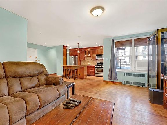 This lovely one bedroom coop has a layout that is perfect for entertaining. There is a large living room with overhead lighting, a separate area for dining and an open contemporary kitchen with cherry wood cabinets, granite countertops. breakfast bar with stools, stainless appliances and recessed lighting. The beautiful golden oak hardwood floors flow throughout the unit and there are 4 large closets for storage and organization. The stunning designer bath has travertine tiling, mosaic flooring and a modern glass shower door. As for the bedroom, it can easily fit a king size bed and has a double closet with glass doors. This apartment is exceptionally quiet and ideal for someone with pets -----AND YOU CANNOT BEAT THE INCREDIBLY LOW MAINTENANCE FEE OF $574 WHICH INCLUDES ALL UTILITIES! This terrific location affords convenient access to all modes of transportation with the NYC Ferry and Manhattan 27X/37X Express Bus & local bus service to the train just one block away on Bay Ridge Avenue & easy access to the highway on the corner of 68th St. This 100% owner- occupied building has solid financials and pets are permitted with board approval. Building amenities include brand new elevators, card operated laundry room, additional storage availability for a nominal fee, bike room & Garage with wait list, but the parking is better than most other locations of Bay Ridge. Enjoy Owls Head Park, 69th Street Pier, Narrows Botanical Gardens, Shore Promenade and the highly acclaimed restaurants and shopping of Bay Ridge.