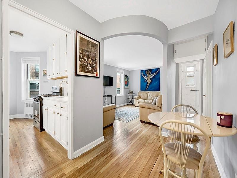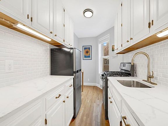 THIS IS A CHARMING, RENOVATED 1 BEDROOM IN ONE OF BEST BUILDINGS AND HOTTEST LOCATIONS OF BAY RIDGE! THE LOW MAINTENANCE OF $606 COVERS ALL UTILITIES, INCLUDING ELECTRIC, COOKING GAS, WATER, AND PROPERTY TAXES. This apartment is beautifully redone and is a quiet, sunny respite with southern and eastern exposures. The eat in kitchen features white cabinets, white subway tile backsplash and quartz countertops. The contemporary pristine bath has a shower with sleek glass door, tiled flooring and window. Everything about this unit is welcoming. From the moment you enter you are greeted with sunshine, openness and a unique projected archway leading into the living room. The hardwood floors are in perfect condition and there is a double closet in the bedroom, linen closet and entry coat closet. PETS ARE WELCOME WITH APPROVAL! Building is 100% owner-occupied, has excellent financials and a resident superintendent. Amenities include recently renovated lobby, new elevators, laundry room, storage & bike rooms, and garage (wait list), but easy street parking. Convenient access to all modes of transportation, including the Ferry Service to Wall Street, the R Train (Bay Ridge Avenue station), NYC 27X/37X Express Buses & local bus service and convenient access to the BQE and Belt Pkwy. You will enjoy Owls Head Park and dog run directly across the street, the Waterfront Promenande, Bicyle Path to Coney Island, Narrows Botanical Gardens, 69th Street Pier and the many other inviting outdoor spaces as well as Bay Ridge's acclaimed restaurants, shopping and festivals!