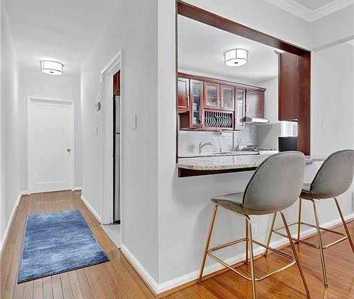 BEAUTIFULLY RENOVATED 1 BEDROOM IN A PET FRIENDLY COOP WITH EXCEPTIONALLY LOW MAINTENANCE FEES OF $670 WHICH COVERS ALL UTILITIES INCLUDING ELECTRICITY! LOCATED IN ONE OF THE MOST SOUGHT AFTER AREAS OF BAY RIDGE, THE NEIGHBORHOOD AMENITIES AND TRANSPORTATION OPTIONS CANNOT BE BEATEN! This quiet 3rd floor rear unit has southern and eastern exposures and an "open concept" kitchen with breakfast bar, stainless appliances, granite countertops & an incredible amount of cabinet space, lovely hardwood floors, crown moldings, 4 large closets & a pristine white tile bathroom with tasteful updates. The well laid out bedroom easily accommodates a king sized bed. Coop is 100% owner-occupied and has excellent financials. Building amenities include a card operated laundry room, storage/bicycle rooms for a nominal annual fee, new elevators & responsive building staff. Pets are welcome with board approval & no specific weight limit. Wait list for garage but there is easy street parking. Many commuting options are available, including the NYC Ferry to Wall Street, NYC Express Bus and local buses to the R train as well as convenient access to the BQE and Belt Parkway. With Owls Head Park and Shore Road Promenade right outside your door, you can enjoy the perks of the 69th Street Pier with the stunning panorama of the NYC skyline and harbor, the Narrows Botanical Garden, Bicycle Path to Coney Island and last but not least you will delight in Bay Ridge's many acclaimed restaurants, cafes and shopping!