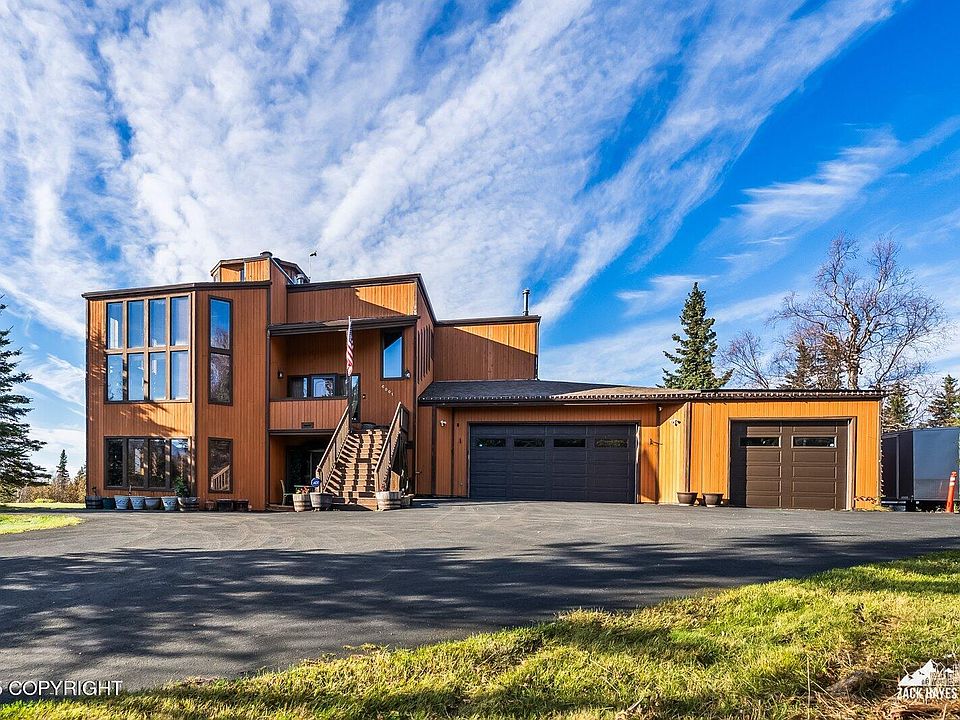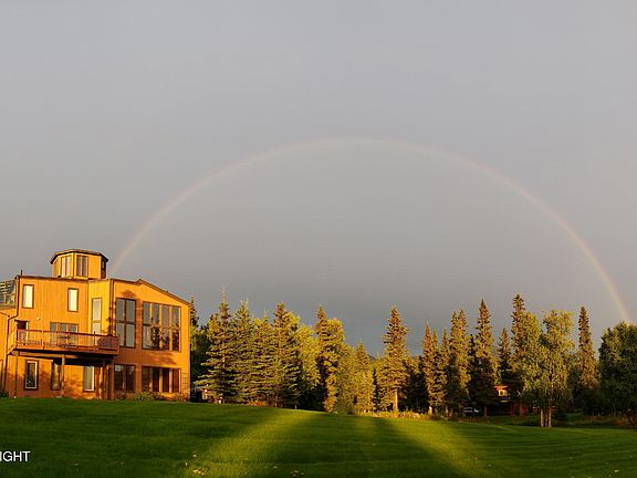 Beautiful custom home on a spacious corner lot in Mid-Hillside with stunning mountain, sunset, and northern lights views. Large windows fill the home with natural light and showcase the scenery year-round. Natural stone flooring, redwood detailing throughout, and a well-designed kitchen with granite countertops add warmth and character to the home. The primary bedroom features a bright solariumwith incredible views, while the cupola above the home provides a stunning 360° panorama of the surrounding landscape. The lower level includes a separate entrance, fireplace, wet bar, deck, bedrooms, and generous storage, creating a comfortable and versatile living space. The property offers a lush lawn, fenced dog run, and ample parking, including an RV or boat parking pad with electric and septic hookups. A truly special Anchorage property with space, comfort, and some of the best views from Mid-Hillside, along with winter-friendly roads and driveway access