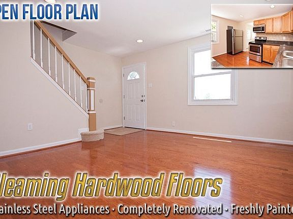 Gorgeous 3 Bedroom and 2 Full Bathroom fully renovated Single family home in Dundalk. Gleaming hardwood floors lead into an open floor plan. The Kitchen is highlighted by stainless steel appliances and recess lighting. The Master Bedroom has wall to wall carpeting with a walk in closet and your own private master bathroom. a 5 Car driveway leads right up to a detached garage with extra storage.