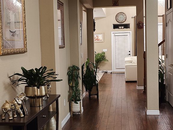 Spacious 4-Bedroom Home for Rent with Modern Features and Water View Welcome to your dream rental home! This stunning property combines modern upgrades, stylish design, and serene outdoor spaces, perfect for families or professionals seeking comfort and elegance. Key Features: Freshly Painted Throughout: A fresh and inviting interior that feels brand new. Wood Flooring: Beautiful wood flooring extends throughout the entire home, including upstairs no carpet for easy maintenance! High Ceilings with Chandelier: The family room boasts soaring high ceilings with a stunning chandelier, adding a touch of elegance to the open space. Curtains Included: Custom curtains are provided, complementing the home's refined style and ensuring privacy. Water View: Enjoy picturesque views of the water right from your home, adding tranquility to your everyday living. Upgraded Outdoor Spaces: Driveway and Backyard Pavers: Recently installed pavers in the driveway and backyard offer a sleek and polished look. Wide Backyard: A generously sized backyard, perfect for entertaining, relaxing, or enjoying the water view. Corner Lot: Situated on a prime corner lot with plenty of open space on both sides, offering additional privacy and outdoor versatility. This home is a perfect blend of indoor comfort and outdoor beauty, with modern updates and a serene water view that will make every day feel special. Don't miss out contact us today for more information or to schedule a private showing! Lawn Maintenance Included: The owner will cover lawn care for a worry-free experience. Renter Responsibilities: Tenant is responsible for electricity and water. Deposit Requirements: Last month's rent is due at lease signing. Pet Policy: Up to 3 pets allowed bring your furry family members! Smoking Policy: No smoking is permitted on the property.