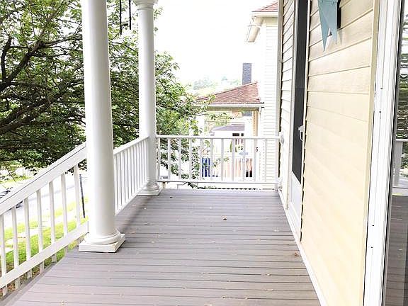 This fantastic four-square colonial is brimming with old-world charm! Fantastic hardwood floors, french windows, pocket doors, original banister and stairs with glass door for butler stairs, and ornate moldings throughout. The formal dining room has a fantastic mantle and wallpaper with a gorgeous chandelier. The parlor has grand columns and is separated from the dining room by an original pocket door. French windows open the parlor to the full width front porch. The kitchen features stainless appliances with a gas stove and plenty of counterspace. With plenty of cabinets and pantry space, you'll find it hard to run out of storage space. The breakfast nook is just off the kitchen and opens to the large family room, featuring a wood stove and new full bathroom with standup glass and ceramic shower. The large deck off the family room is great for summer BBQs. On the second floor, you will find 4 generously sized bedrooms, all light filled with ample storage. The master bedroom features a walk-in closet and a screened balcony. The third floor has a great studio/office space. It's full-height ceilings allow even the tallest of giants to stand up and not hit their head! There is also approximately 400 square feet of floored attic storage. Along with the unfinished basement, you shouldn't even need to think about renting a storage unit!