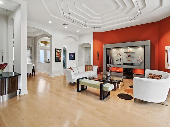 This Riviera model is a 3 bedroom, 2 1/2 bath home, which has been designed and decorated with the most elegant contemporary upgrades. It showcases like any current new community model home at a fraction of the cost. Upon visiting this home, you will see the expansive great room and kitchen open floor plan design, creating elegance and functionality. The new and rich looking hardwood flooring is located throughout most of the home. The primary suite and third bedroom features new plush carpeting. Beautiful wall decor, lighting and window treatments add to the elegance and feel of the home. The exterior patio area has been upgraded with wood ceilings, spacious stone flooring, phantom screening, contemporary fountains and upgraded landscaping with two beautiful canary palm trees for a Zen like experience. The garage itself is like no other. The cabinets, flooring, refrigerator and luggage racks are all combined with matching design and originality. The two zone A/C units are approximately 5 years old. A new refrigerator was recently bought that enhances the beauty of a luxurious kitchen.