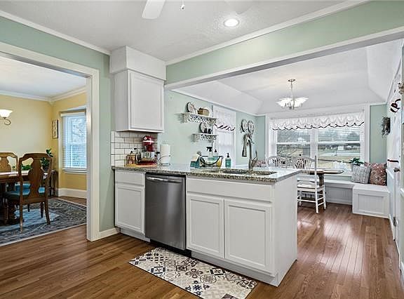 Don't miss this NEWLY UPDATED 4 bedroom home in Gladstone! Remodeled kitchen features newly added cabinetry, granite countertops with island bar, tile backsplash and new Stainless Steel appliances and sink. Dine in the quaint breakfast nook with built in seating or entertain in the formal dining room with adjacent formal living room. All new flooring throughout the main level including tile entry and beautiful hardwoods. Upper level has four bedrooms including owner's suite with fully remodeled ensuite bath featuring custom tile shower. Newly remodeled secondary full bath has tile flooring and double vanity with quartz counters. Never run out of hot water with the tankless water heater. Lower level features family room with brick fireplace and built-ins. Finished basement perfect for additional family room, hobbies, or exercise room. Covered Deck with Roman Shades looks out over private backyard with mature trees and green space beyond. Built in attached shed to store toys and/or lawn equipment. Fresh interior paint throughout home and New Roof and Gutter Guards 2019! Washer and dryer stays! 2022-02-06