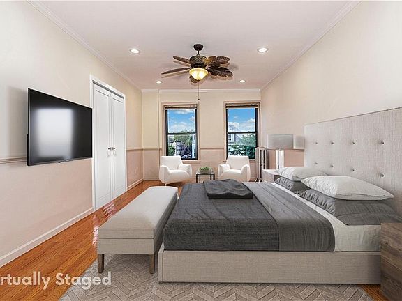 SPONSOR UNIT - No Board Approval. We are proud to offer an INCREDIBLE opportunity to own this totally GUT-RENOVATED and HUGE true 2 bedroom (can easily be converted to a 3 bedroom if desired), 1 bath apartment in Bay Ridge's HOTTEST location! Offering Almost 1100 sq. ft. of living space with an extremely functional and flexible floor plan, an abundance of natural light with windows in every room, and plenty of closet space for all your needs. Located on the 3rd floor of a 4-story walk-up building, this 5-room corner unit offers an oversized hallway entrance that leads to a large Living Room, Kitchen with custom high-end cabinetry, stainless appliances, and Dining Room featuring 4 large brand new windows! Additional highlights include high-end cabinetry, stainless appliances, custom floor to ceiling bedroom closets, recessed lighting, brand new windows, ceiling fans, and custom wainscoting and hardwood floors throughout. The building is extremely well kept and managed with strong financials and NO board approval and features a live-in super, laundry in basement, bike room, additional storage available for a small monthly fee, PET FRIENDLY and sublease permitted after 2 years. You couldn't ask for more!! Steps to some of Brooklyn's finest dining and shopping options, all transportation to Manhattan including the exciting and incredibly convenient FERRY service into Manhattan, express buses close by, short walking distance to the R train, minutes to the BQE and a 10-minute drive to Lower Manhattan! Close proximity to many highly rated schools (P.S. 102, Xaverian High School), beautiful Family Friendly Owls Head Park, and the breathtaking Shore Road Promenade and 69th Street Pier! Don't let this one pass you by. THIS IS THE ONE YOU'VE BEEN WAITING FOR!