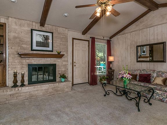 Welcome home! Charming and fresh, light & bright. Well care for home in established neighborhood. Nice spaces throughout with vaulted beamed ceiling in living room. Spacious kitchen with 18'' ceramic tiled floors opens to dining area. Large windows provide plenty of natural light. Generously sized utility room that can double as mudroom or office! Main bath recently updated with ceramic tiles, mirrors, paint & fixtures per owner. Magnificent backyard with beautiful mature trees and lovely beds of fresh mint, honeysuckle & flowers. Sprinkler system for easy care. Great price for this fantastic home!!!!