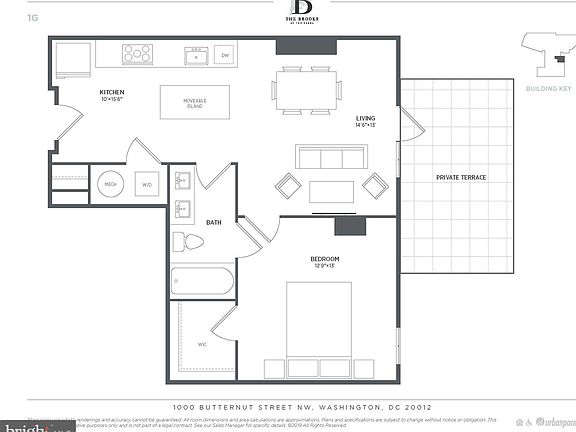 SCHEDULE YOUR VIRTUAL TOUR of this 1BR, 1BA unit with private terrace! It has a fabulous layout ample living space. Open kitchen complete with an island and stainless steel appliances. Master Bedroom with walk-in closet and ensuite bath. This unit is not to be missed! ; The Brooks, elegantly appointed condominium residences nestled in the heart of The Parks at Historic Walter Reed - the largest mixed use development in DC! Discover timeless features, upscale amenities, and a vibrant, walkable campus. This is a one-of-a-kind place to live, breathe, and thrive in Washington, DC ; Sales Gallery is located at 1000 Butternut St. NW ; Delivery January 2021