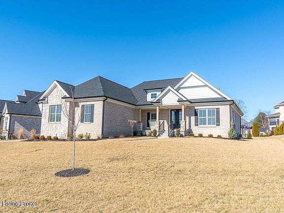 Gorgeous picturesque Summerfield by the Lake, Brand New - dream home with an Incredible OPEN FLOOR plan, Tremendous Natural Light. The Modern floor plan immediately opens to a magnificent Great Room with Glass Double doors to a covered deck, stone fireplace and the entire first floor - the perfect combination for family living and entertaining. Stunning kitchen features Monogram Appliances with center island also a vented hood. Barnwood (hardwood) floors - plantation blinds, encompass most all the first floor. Formal Dining Room ALSO has glass sliders to the deck and patio. Primary Bedroom suite has trey ceiling and beautiful ensuite. Large walk-in shower, dual vanity and large soaking tub - there is a large walk-in closet that also has direct access to the first-floor laundry. Two additional bedrooms (located on the other side of the first floor) and full bathroom complete the first floor. The lower level is finished with an additional family room, large wet bar, high tech theater room with surround sound (perfect for "movie night"), two additional bedrooms and a full bathroom. The exterior of the home has been designed with an irrigation system. Three car garages have the space needed for all. Award winning Oldham County Schools. This beautiful property has luxury and the comfort of a well-designed home."