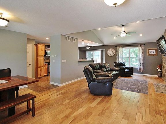 This offshore property is a GEM with so many facets to love both outside and inside. First, the location! Situated on three wooded lots (1.10 acres!) on the lake's west side, you will enjoy privacy PLUS being close to Hwy 44, Par 3 golf course, and Sunset Beach. Second, the dream outdoor areas! Highlights include HUGE deck with wooded views, custom bonfire area, fenced play or pet yard PLUS a second detached garage with nearly 1,000 sq ft! And third, the amazing interior! Who wouldn't enjoy a 1,799 sq ft walkout ranch with FOUR main level BRs, three baths, stone FP feature wall, wood floors, hickory kitchen, PLUS finished LL game and media rooms! Don't miss this GEM of a property!