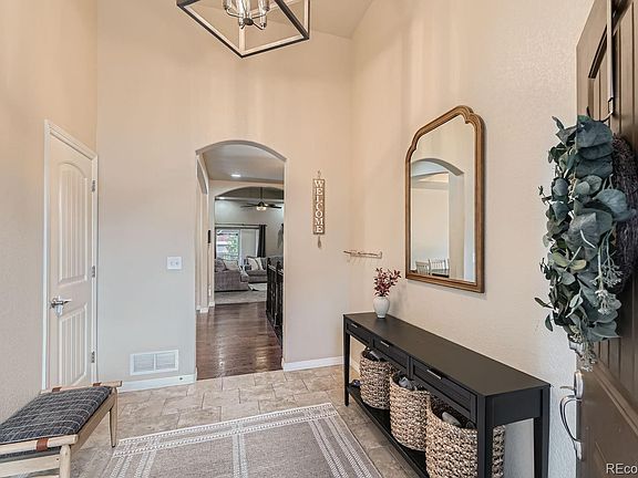 Back on market! This beautiful 5 bedroom, 4 bathroom ranch-style home in the Carriage Hills neighborhood is a rare find and one you will surely want to see! Upon entering, you are met with inviting hardwood floors that flow throughout the main level, leading you into a spacious great room with tall ceilings and a cozy gas fireplace, perfect for gathering and relaxation. This space flows effortlessly into the spacious kitchen complete with a large island, stainless appliances, and a convenient eat-in area. Whether you’re hosting a casual get together or a formal dinner, this kitchen is designed for both functionality and charm. Adjacent to the kitchen is a large formal dining room, perfect for special occasions and entertaining. The large primary suite offering an abundance of natural light is an ideal space to unwind with double sided fireplace to 5 piece en-suite and impressive walk in closet. The main floor also features a generous secondary bedroom with dramatic vaulted ceiling that could be used as a wonderful home office as well. The fully finished basement with new carpet and luxury vinyl floors offers 3 additional bedroom, 2 full bathrooms, sizable open living area and ample storage. Backyard complete with a sizable deck with 2 retractable awnings, separate entertaining area with pergola and fire pit offering an idyllic setting for outdoor relaxation and entertaining. New class IV hail resistant roof, water heater, flooring, dishwasher, light fixtures. This incredible home offers so much, come take a look and make this beautiful home your reality!