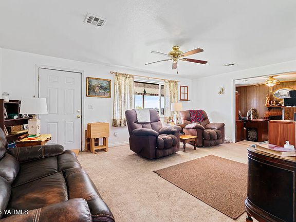 This inviting three-bedroom rambler sits on two parcels totaling 2.5 acres of fully fenced, irrigated pasture--offering room to breathe and space to roam. Inside, a cozy woodstove creates the perfect ambiance for quiet evenings.The property features a detached garage with a fully finished 25' x 25' bonus room--complete with heating and cooling--ideal for a home office, gym, or guest space.RV parking and 30 amp hookups as well as plenty of small outbuildings for storage Relax on the shaded, secluded patio and take in the stunning panoramic views of the Cascades, including Mt. Rainier and Mt. Adams.This property blends peaceful rural living with modern comforts.
